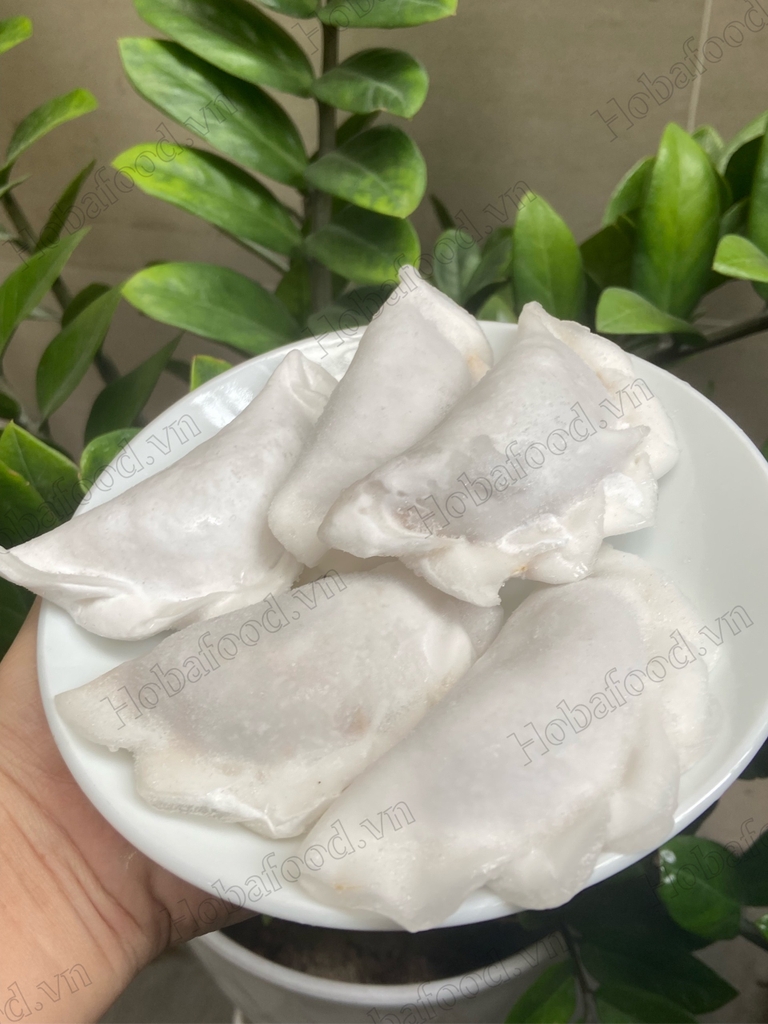 - Màu sắc: Vỏ áo ngoài màu trắng trong, thấy được nhân tôm, thịt, nấm đông cô bên trong