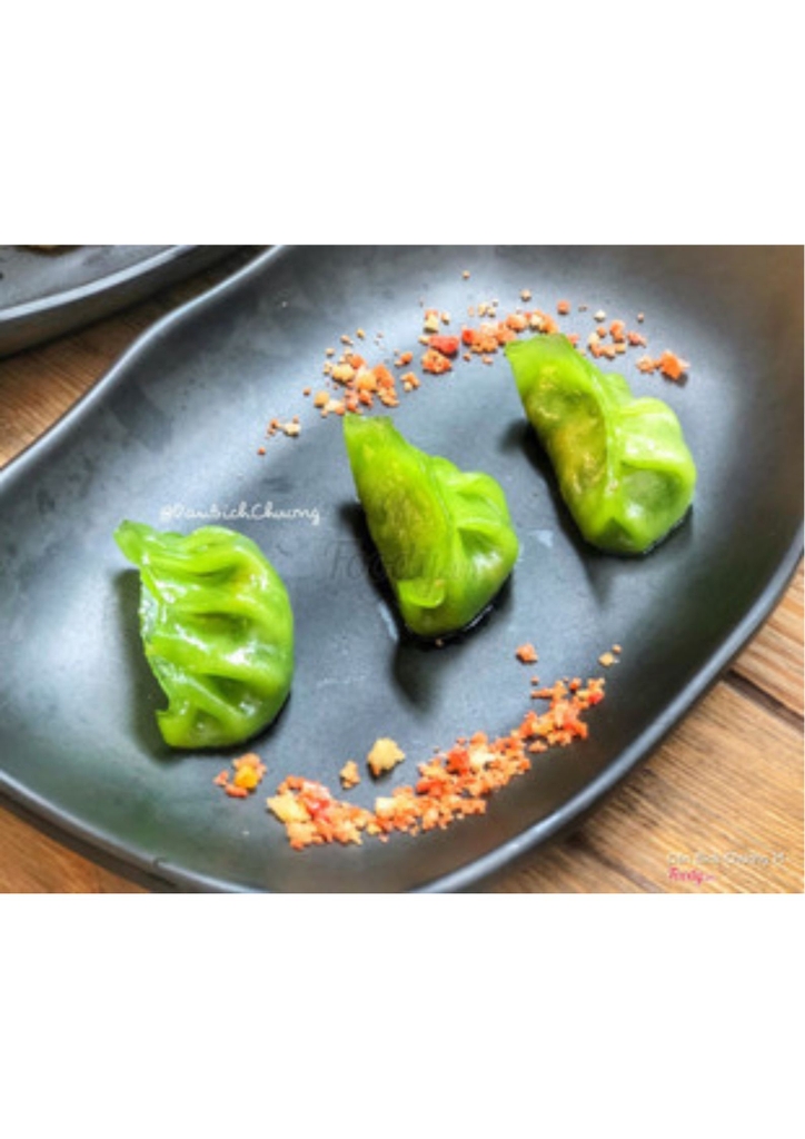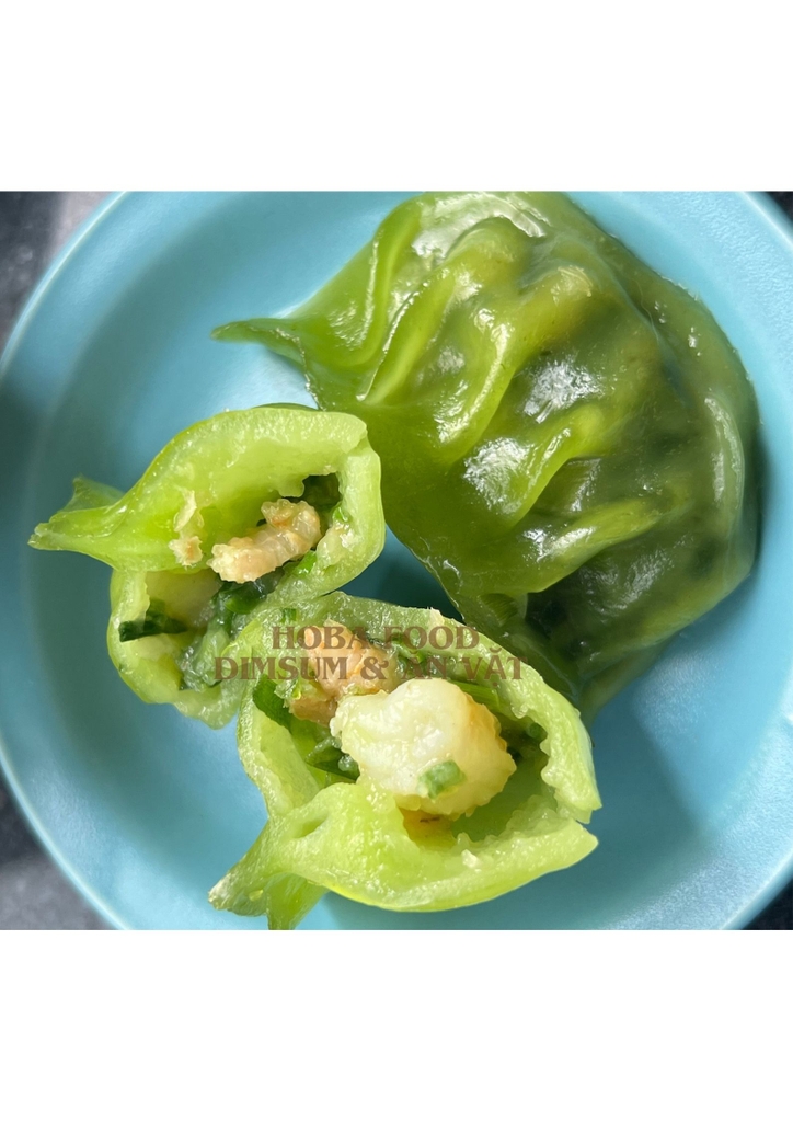 - Màu sắc: Vỏ áo ngoài màu xanh mướt mắt, nhân đầy đặn kết hợp giữa thịt heo, vị ngọt của tôm tươi và mùi hẹ thơm.